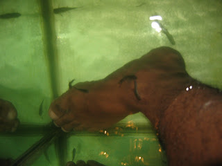 Dr. Fishes in their glass tank. The staff said these Garra Ruffa fishes used to be plenty, don't know what really happened. Maybe some died of over-eating or intoxication from some people's unpleasant feet, hahaha! Hey don't worry, they said the owner will replenish the tanks with more healthier fishes soon.